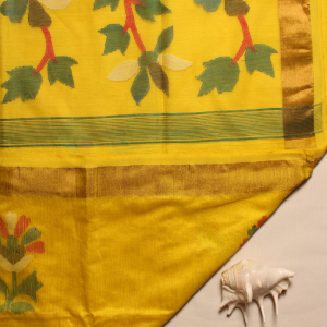 The bold, cheerful yellow brings a burst of brightness and charm — perfect for festive mornings, cultural occasions, or elegant day events. Lightweight yet luxurious, this saree embodies timeless grace with a lively, modern spirit.